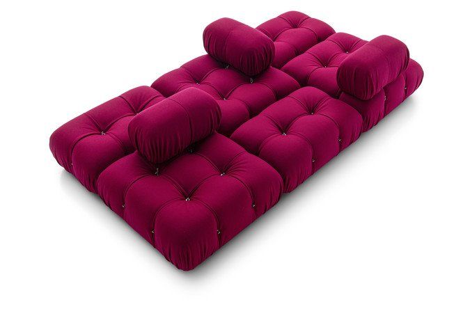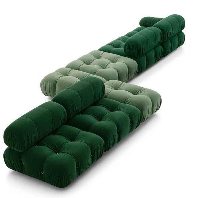 La reedición de la Camaleonda no mira hacia el pasado, sino por el contrario pretende reescribir un clásico indiscutible con una perspectiva contemporánea. La estética, las dimensiones, las proporciones y su configuración se mantienen inalteradas, mientras que la composición del interior se ha rediseñado por completo sin dejar lugar a la nostalgia. El generoso acolchado de poliuretano que forma el característico diseño capitonné permanece inalterado, aún fabricado con el innovador sistema de cables, ganchos y anillos creado por Bellini en 1970, que define el aspecto característico y la modularidad. La característica fundamental de Camaleonda es su modularidad ilimitada, un patrón geométrico que permite que cada elemento se convierta en una especie de píxel enorme a través del cual definir el entorno de tu hogar.